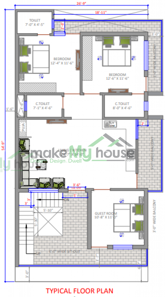 House Plan for 27x55 Plot