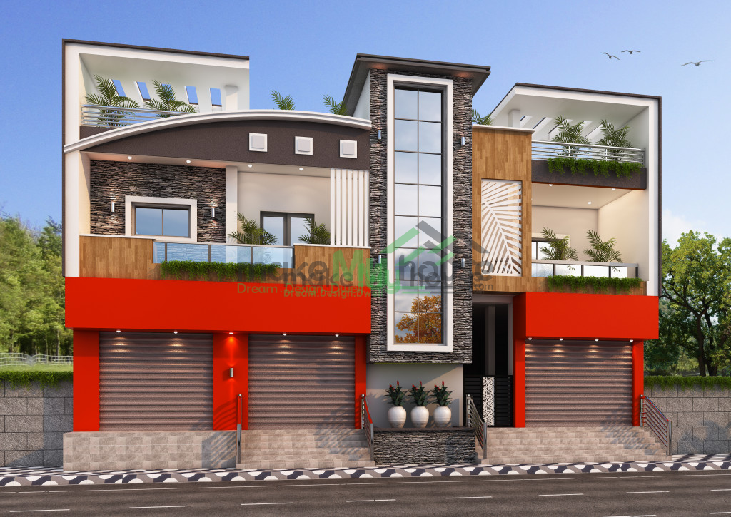 residential cum commercial house elevation
