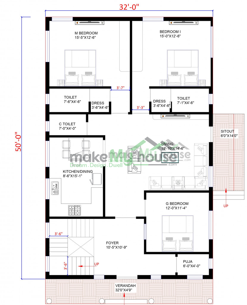 32x50 house plan